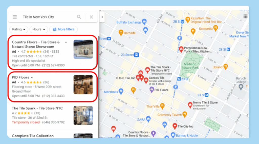 ✅ Xuất hiện ở Top 3 kết quả tìm kiếm địa phương: Khi khách hàng tìm kiếm dịch vụ liên quan đến bạn (ví dụ: “quán cafe gần đây”, “sửa máy lạnh tại nhà”, “cửa hàng vật liệu xây dựng”), doanh nghiệp của bạn sẽ hiện lên đầu tiên.